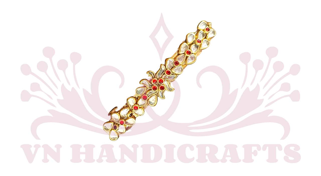 Enhance your hairstyle with the exquisite Kundan Stone Hair Center Clip, a perfect blend of tradition and elegance. Designed to add a regal charm to your look, this beautifully crafted hair accessory features sparkling Kundan stones set in an intricate design, making it a must-have for special occasions.