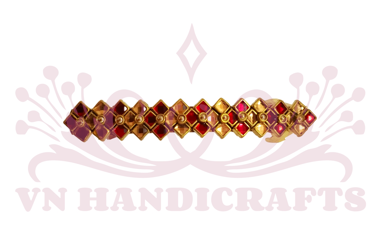 Enhance your hairstyle with the exquisite Kundan Stone Hair Center Clip, a perfect blend of tradition and elegance. Designed to add a regal charm to your look, this beautifully crafted hair accessory features sparkling Kundan stones set in an intricate design, making it a must-have for special occasions.