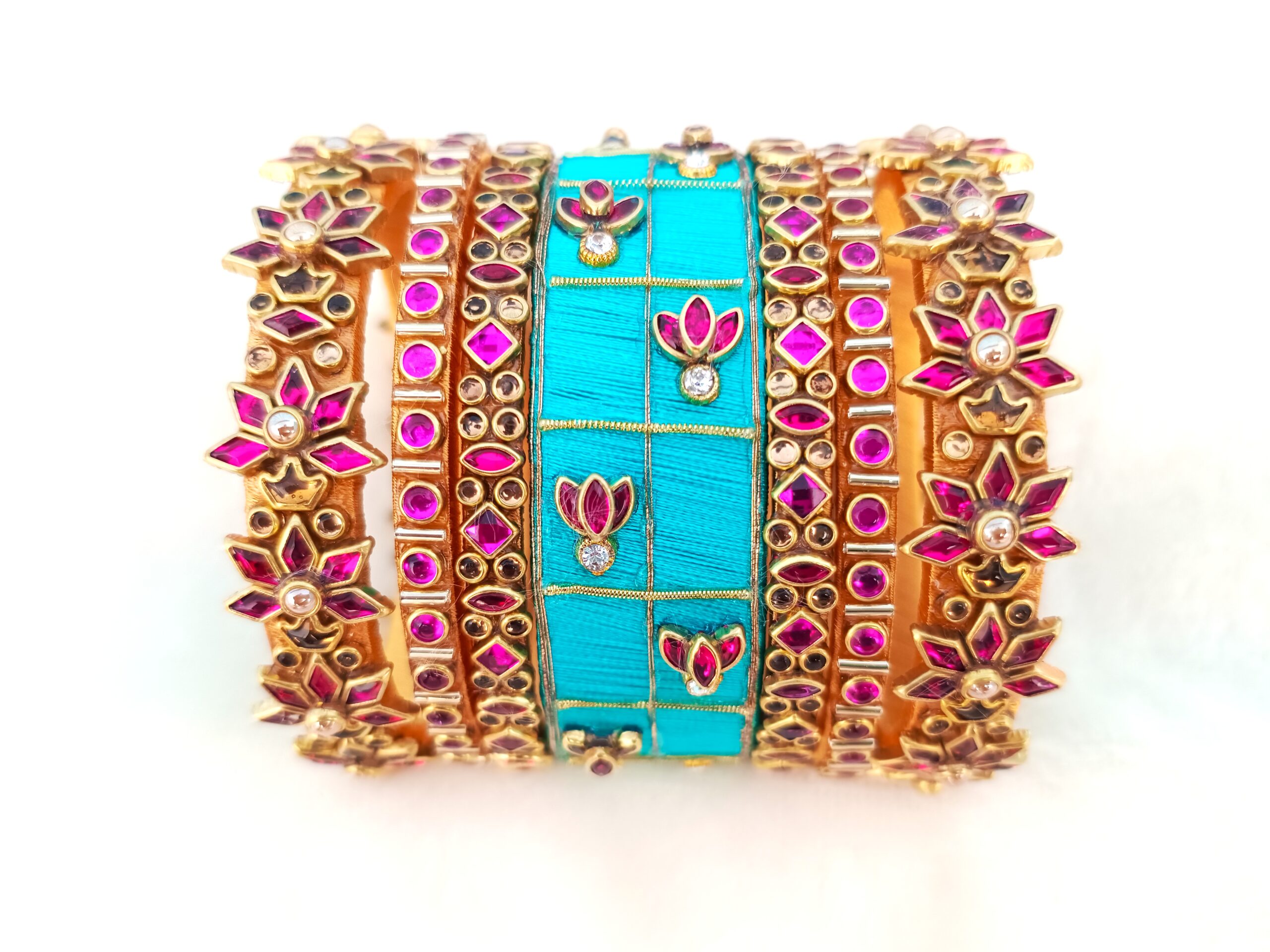 BRIDAL SET – Silk Thread Bangles with Kundan Stones – A Perfect Fusion of Tradition and Elegance